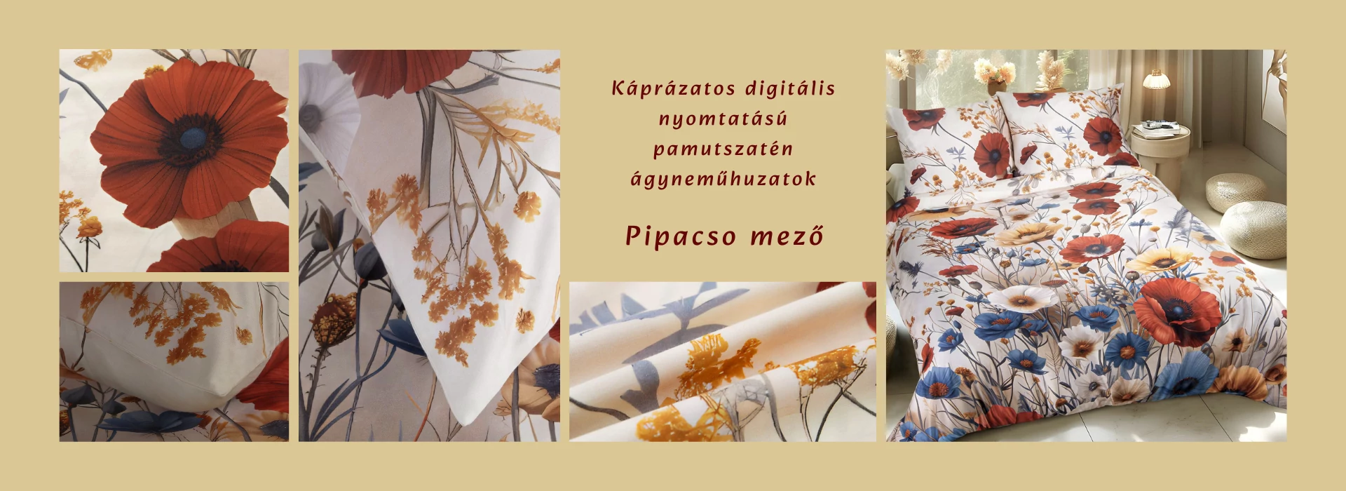 Pipacsos mező kétszemélyes pamutszatán ágyneműhuzat díszdobozban