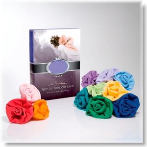 A pamut jersey De Luxe lepedő 100% mako-pamutból készül körgumis kivitelben. a szivárvány 55 gyönyörű színéből 12 méretben választhatsz. Egyedi méretben is megrendelheted. |