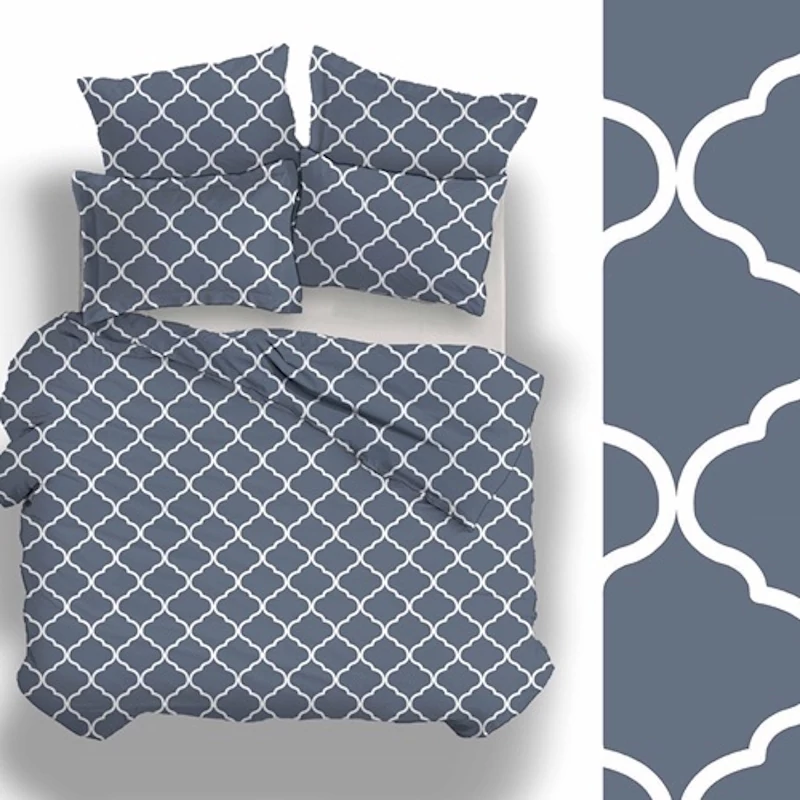 Kék színű pamutszatén ágyneműhuzat különleges mintával minden hálószobába stílust és eleganciát varázsol.