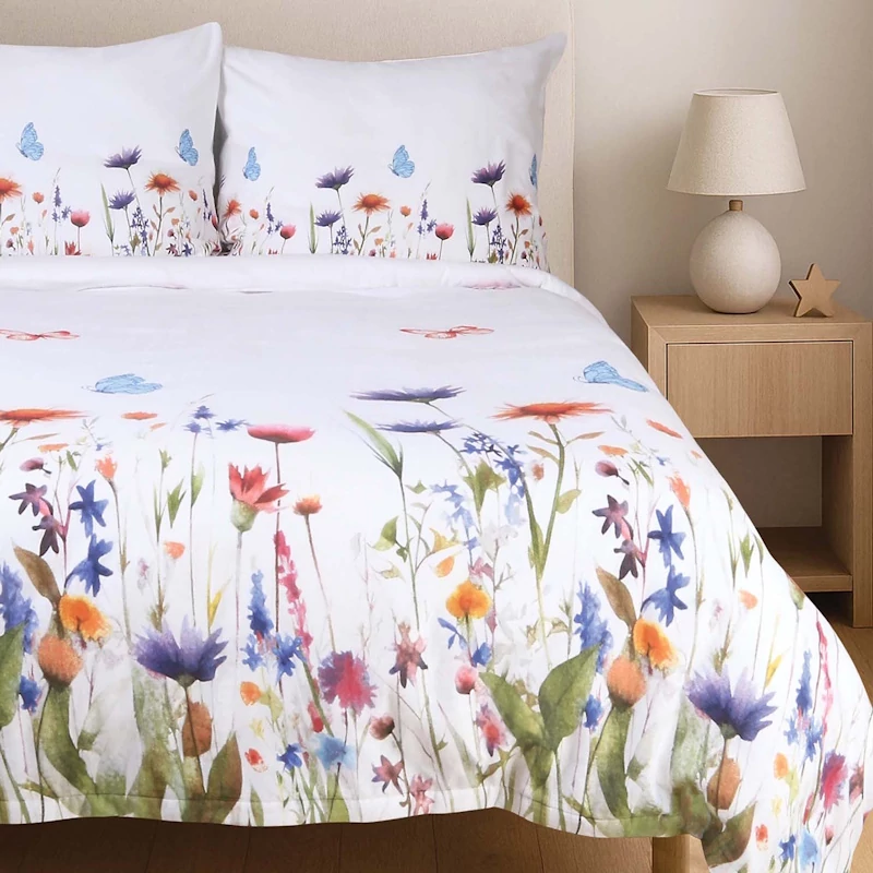 Fehér alapon színes virágtenger, ami eleganciával és harmóniával öltözteti fel hálószobád.